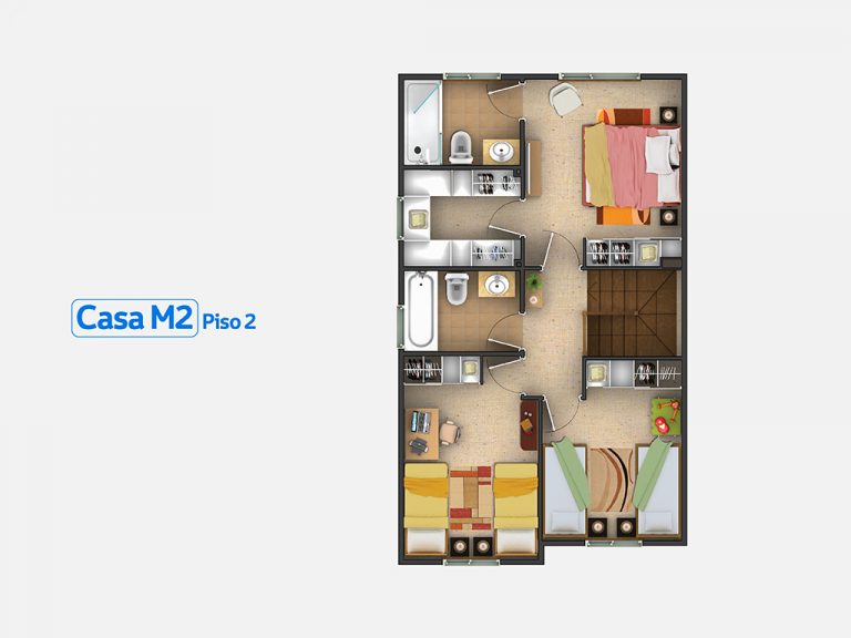 Previous Next Brisa del Sol Barrio Consolidado Cercano a todo Casa Modelo M2 desde UF 6.970 3 dormitorios 3 baños 133 m2 construidos app. Anterior Siguiente Principal en suite con Walk in closetBaño Dormitorio Principal con Shower DoorDormitorios con piso vinílico estilo MaderaLiving comedor con piso Vinílico estilo maderaAmplia sala de estar en primer piso o Cuarto DormitorioCocina Amoblada y equipada con encimera, horno y campanaLogiaTerrazaVentanas de PVC y Termopanel FoliadasAntejardín conformadoAcceso vehicular Volver